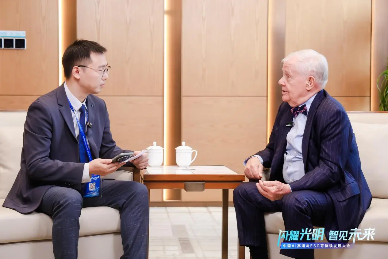 论坛结束后,汇正财经资深投资顾问姜兴平与吉姆.罗杰斯展开了闭门专访,围绕AI科技的产业价值及投资逻辑深入交流。吉姆.罗杰斯表示出对中国市场的未来保持乐观,在当前世界AI技术革命的洪流之中,资本盛宴、产业跃迁与秩序重构交织上演,而ESG浪潮正驱动中国经济绿色换挡、标准重塑,这两大赛道的正孕育巨大投资机遇。